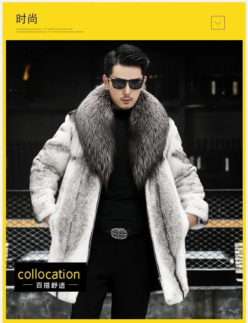 -10 degrees Celsius cold resistant and warm mink fur coat for men's winter imitation raccoon fur collar thickened fur coat