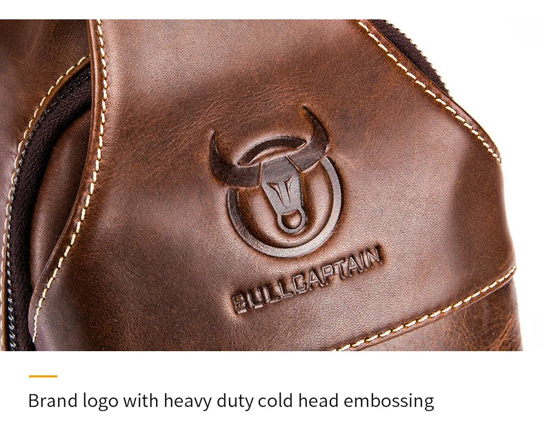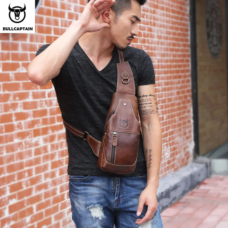 BULLCAPTAIN Genuine Leather Chest Bag Casual Triangle Crossbody