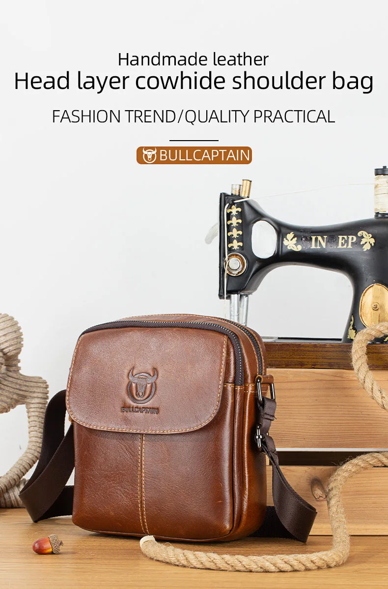 BULLCAPTAIN Leather Men's Messenger Bag Business Shoulder Bags