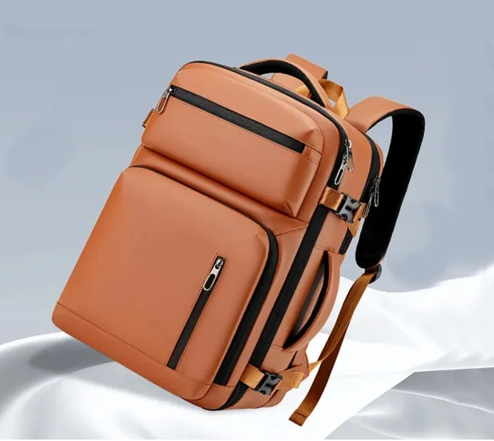 Transcend generic black backpacks - embrace expandable versatility with waterproof protection and premium orange distinction! This 15.6-inch laptop backpack delivers professional functionality, adaptive capacity, weather resistance, and contemporary aesthetic!