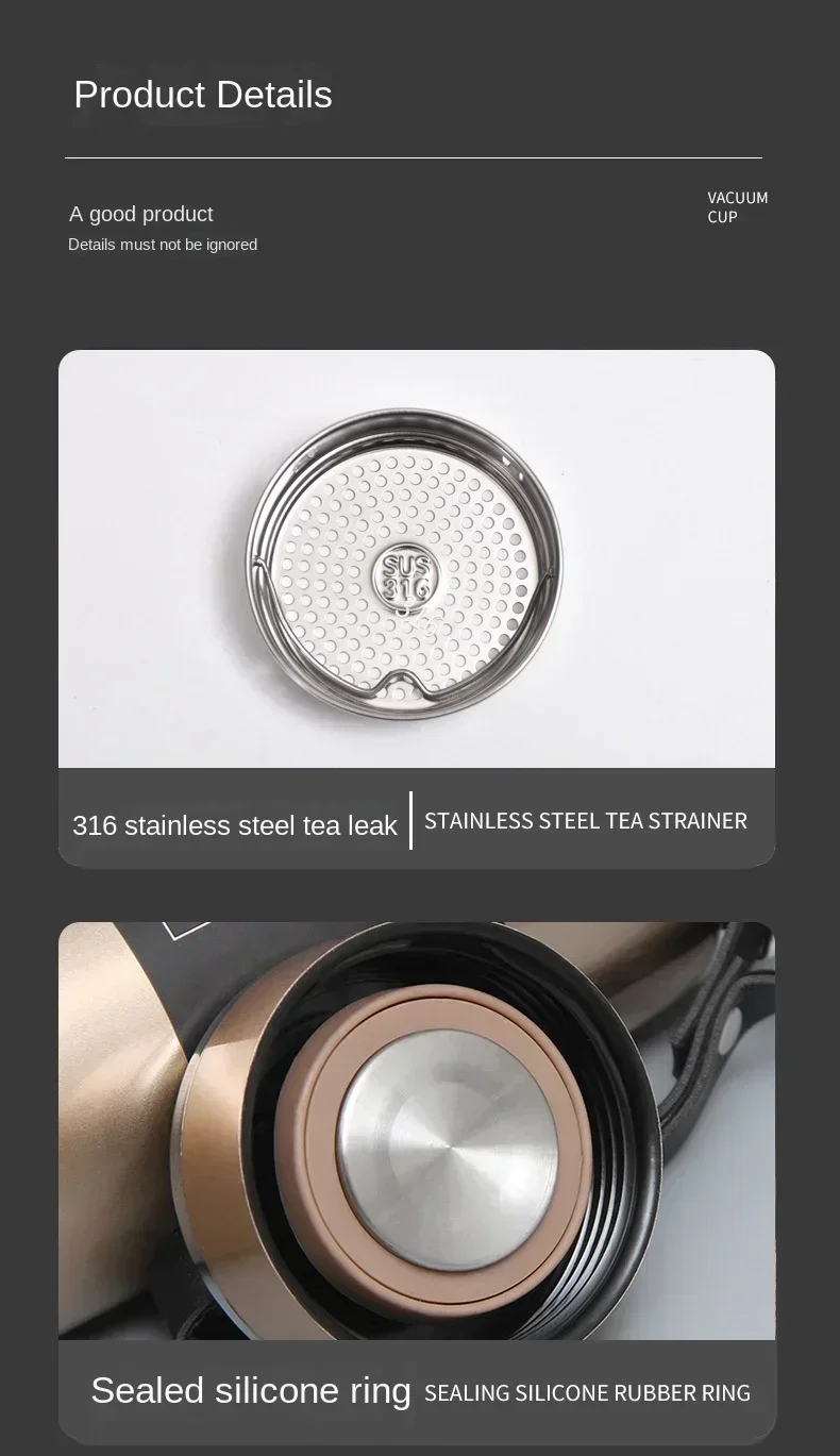2.Made of 316 stainless steel, double-layer vacuum design, safe, BPA-free and environmentally friendly, odorless and easy to clean. It can keep cold or hot water for 12 hours.