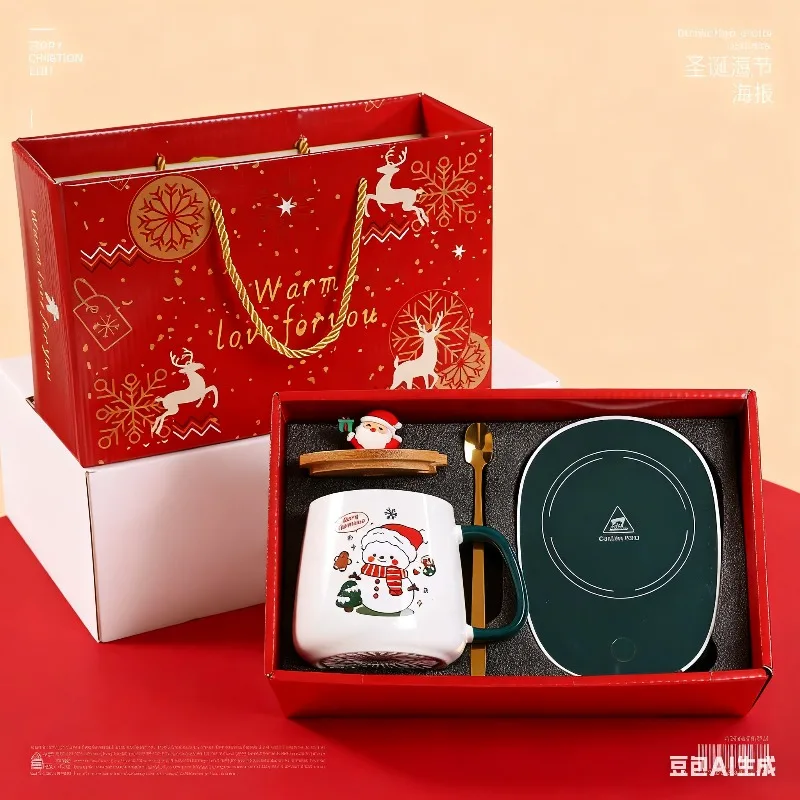 In stock Cute Christmas Gift Ceramic Mug with Lid and Spoon - High-value Santa Claus and Reindeer Pattern Coffee Mug Souvenir