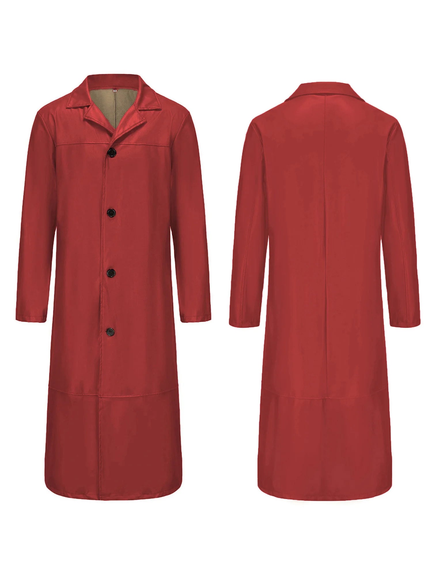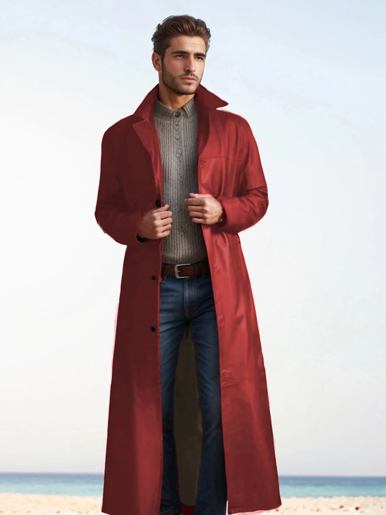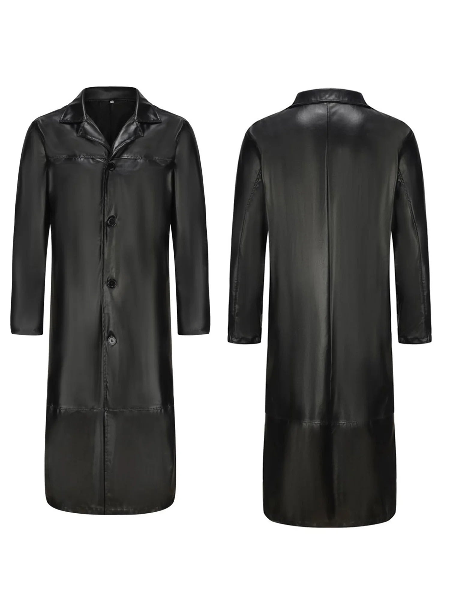 Mens PU Leather Trench Coat Solid Color Lapel Long Sleeve Button Down Windbreaker Outwear for Autumn WinterSize (cm):