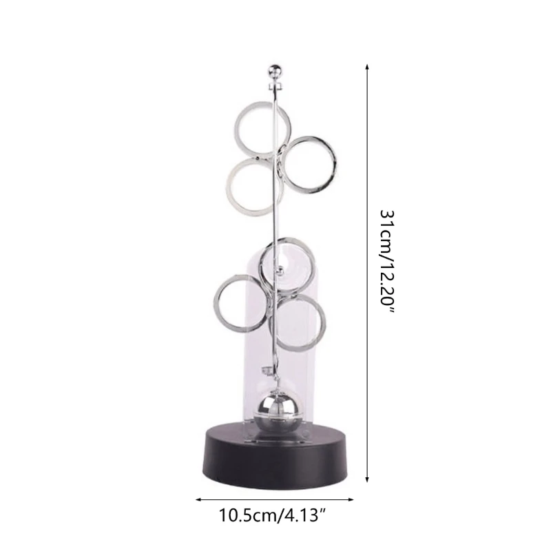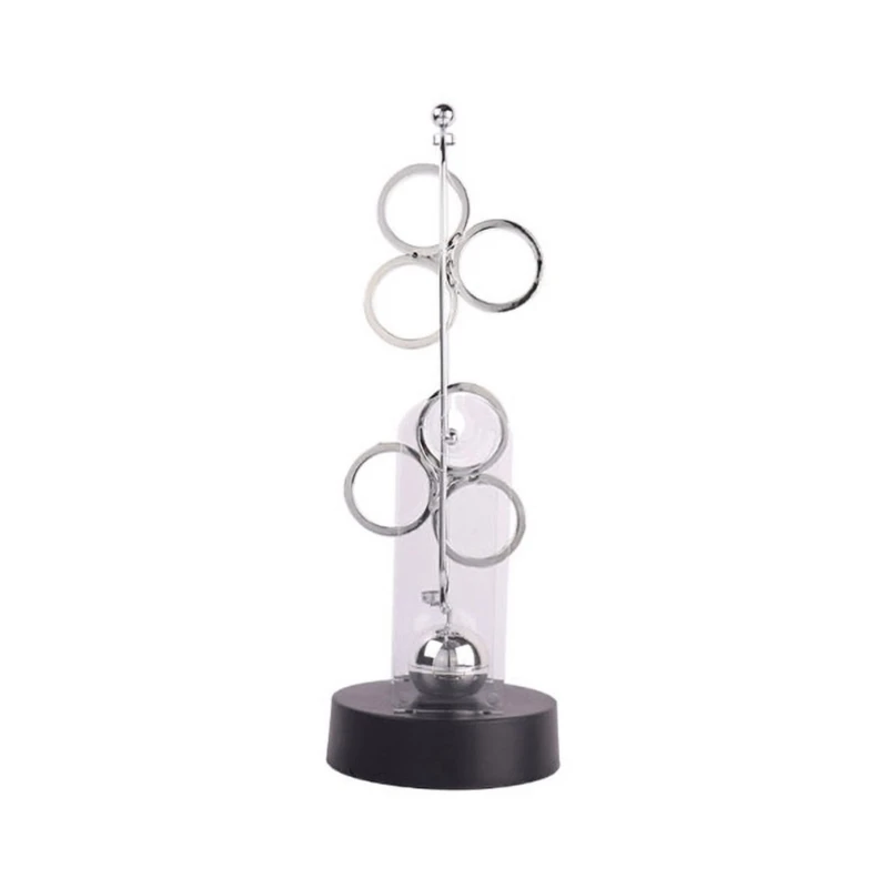 The motion device power by coil within base that generate field when creating attractive force with the magnets on the support bracket and achieving the effect of motion. It is perfect for both science education and home decors, offering fun and engaging way to learn about physics while add elegant to your