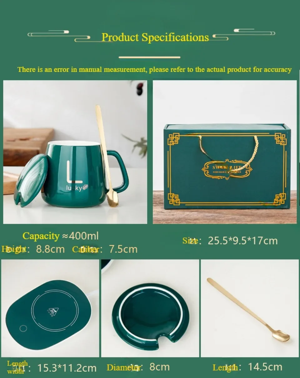 Project Description: Thermostatic Cup Ceramic Mark Cup Warm Cup Gift Box Heating Cup Set Gift Cup
