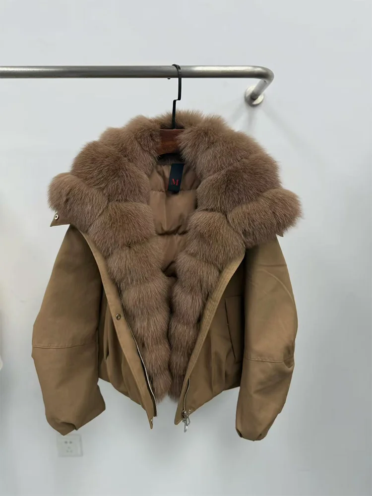 Fashion Winter Puffer Jacket - Fox Fur Collar Goose Down Luxury