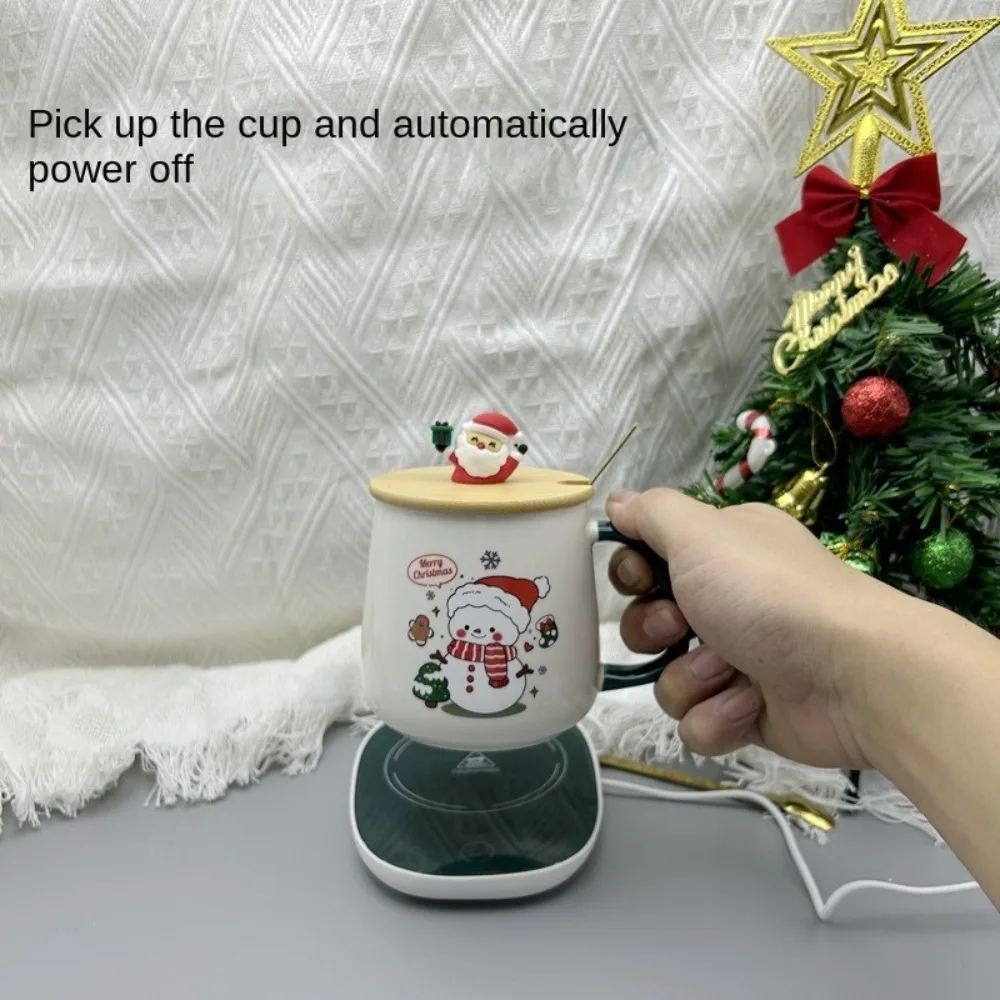 New Merry Christmas Gifts Kit Wooden Lid Santa Claus Pattern Ceramic Mug Snowman Warm 55℃ Teaspoon for Office Home Use