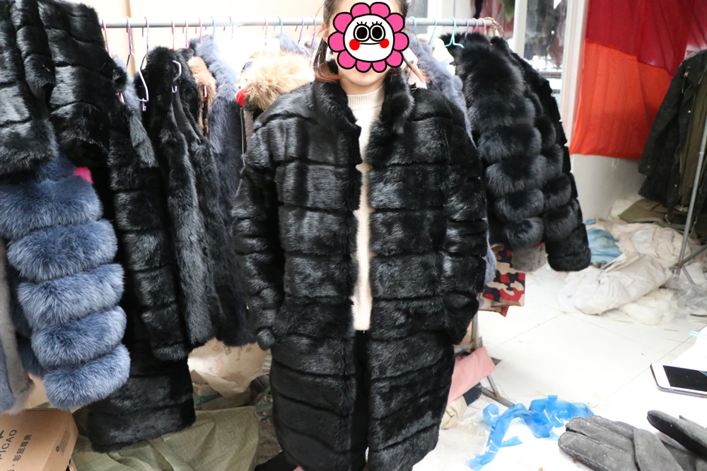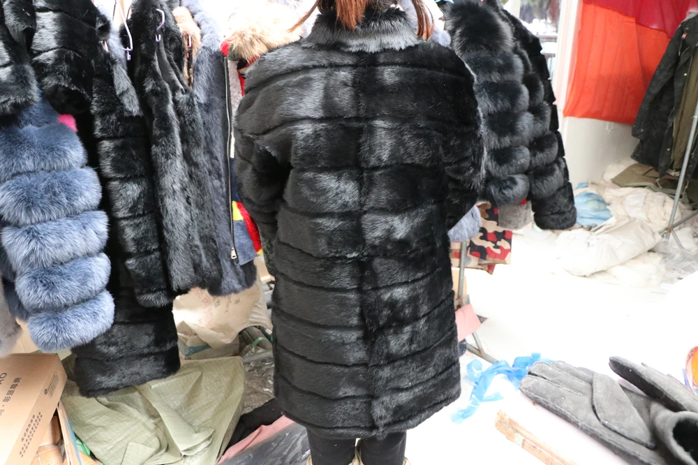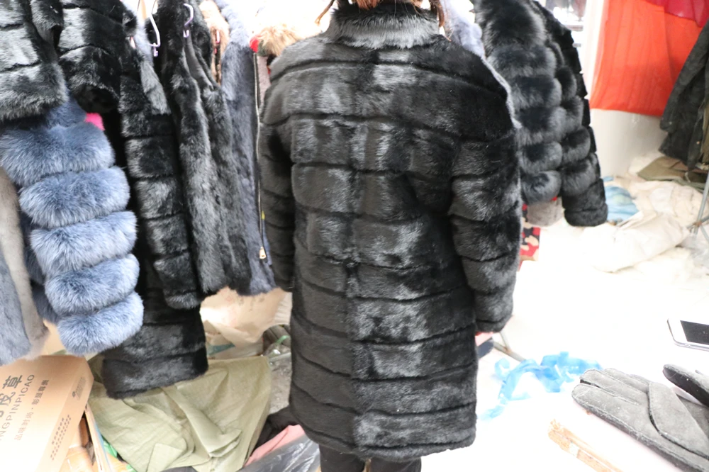 QUEENTINA Real Rabbit Fur Coat New In Outerwears Winter Stand Collar Thick Soft Warm Clothing Women Pelt Natural Long Fur Jacket