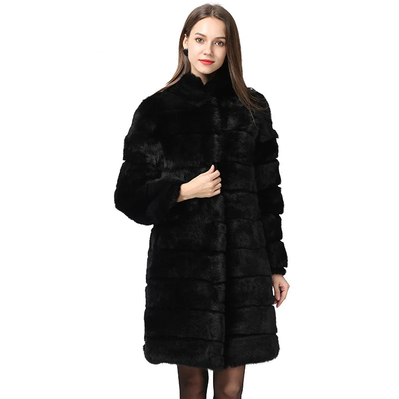 Women's Rabbit Fur Coat - Natural Long Winter Jacket