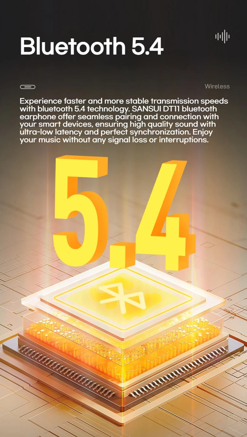 [ Bluetooth 5.4 Enhanced Connectivity ] Experience faster and more stable transmission speeds with bluetooth 5.4 technology. SANSUI DT11 bluetooth earphone offer seamless pairing and connection with your smart devices, ensuring high quality sound with ultra-low latency and perfect synchronization. Enjoy your music without any signal loss or interruptions.
