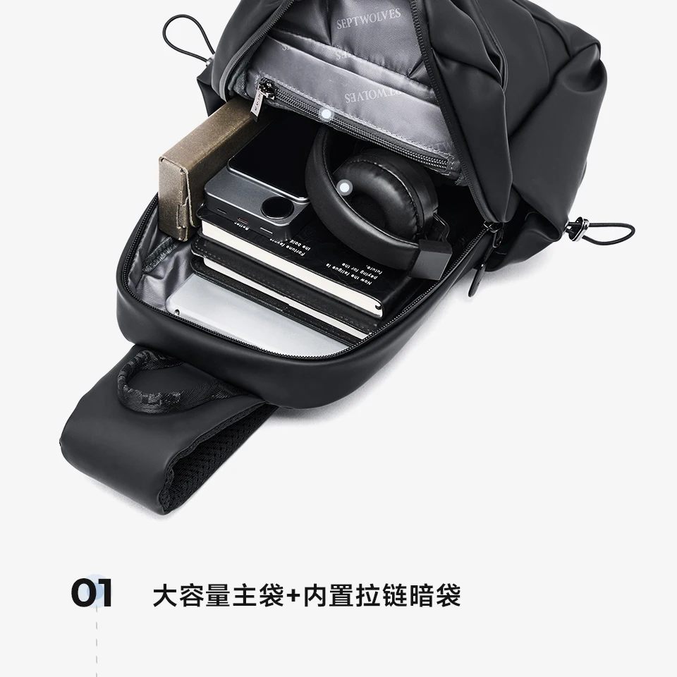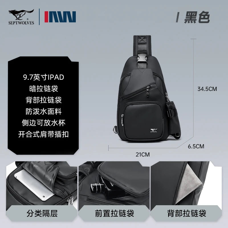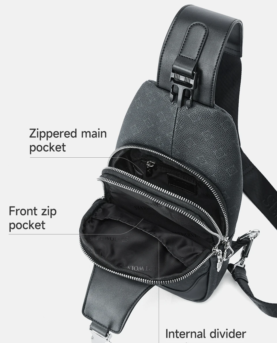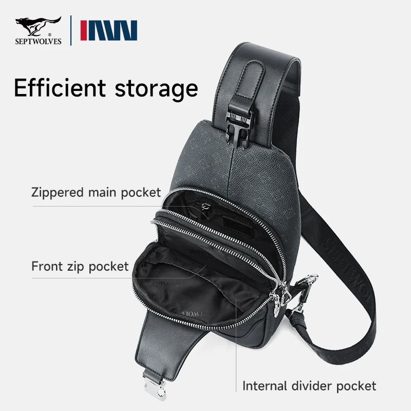 Septwolves Business Thin Printed Leather Crossbody Sling Bag Man