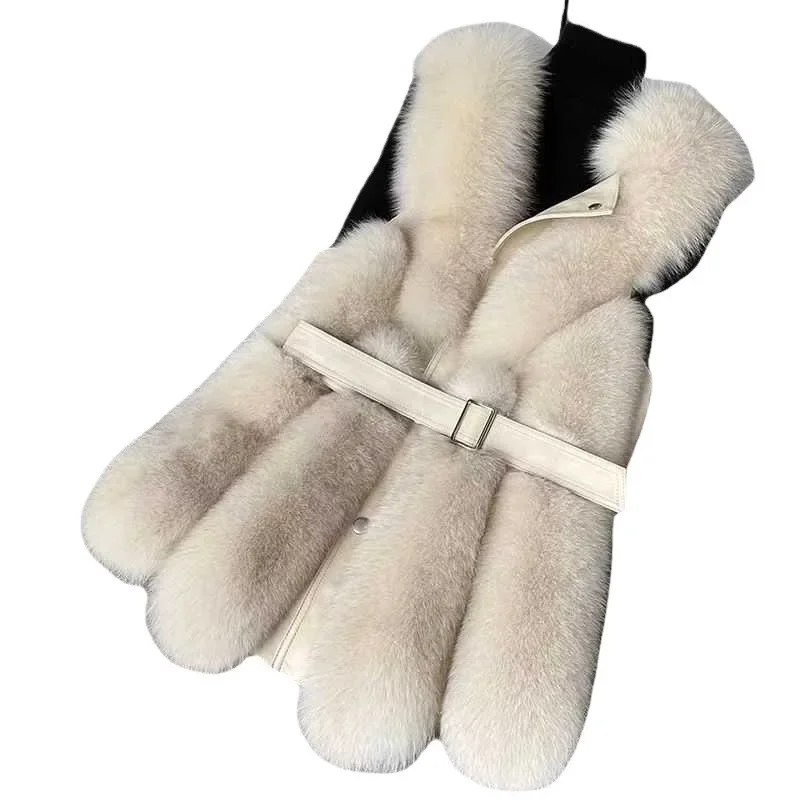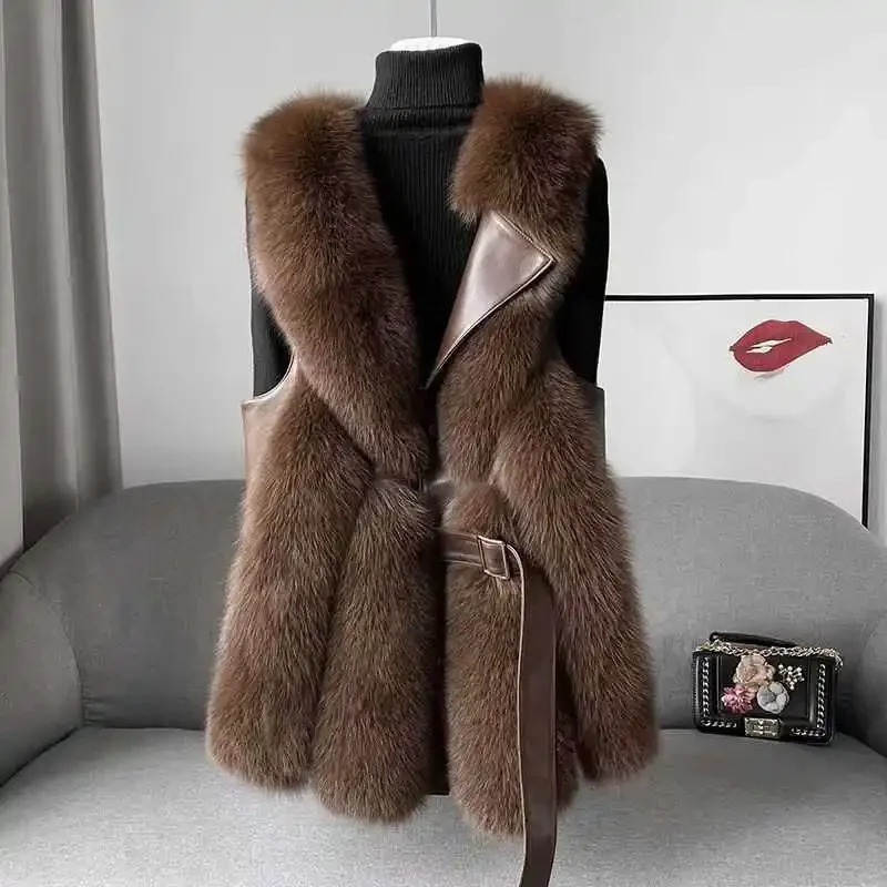 Thick Faux Fur Vest Jacket for Women Warm Colorblock Winter Maxi Coat Luxury Sleeveless Furry Outerwear for Autumn Streetwear